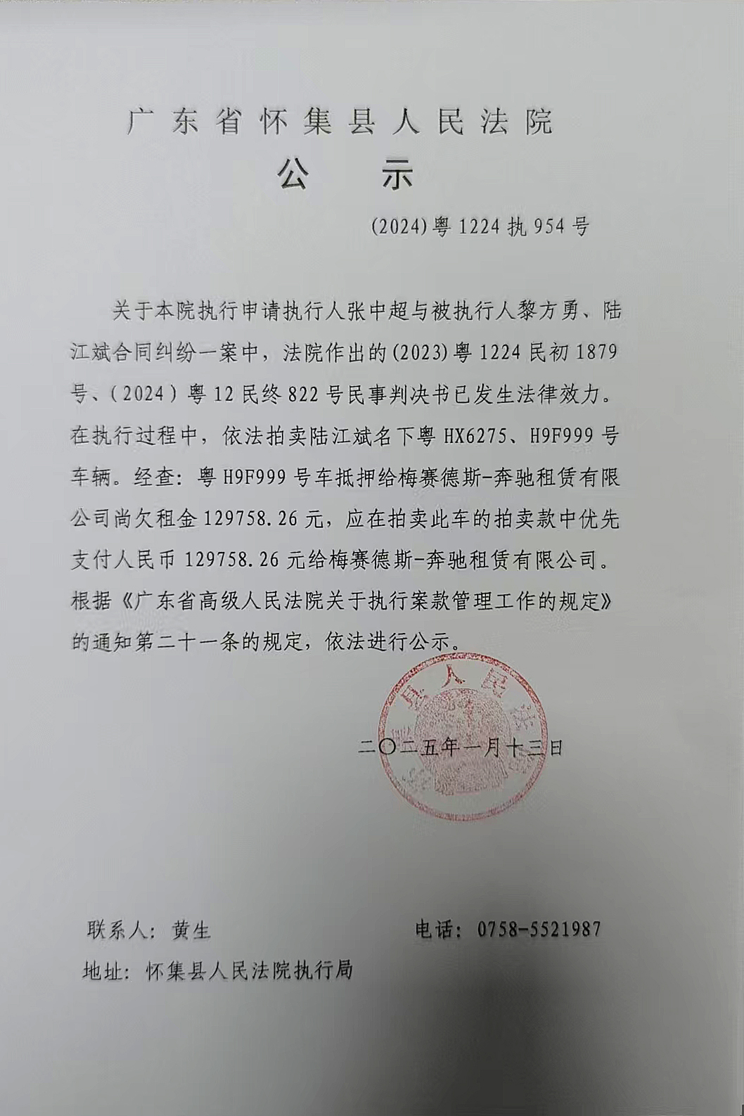 (2024)粤1224执954号案件公示