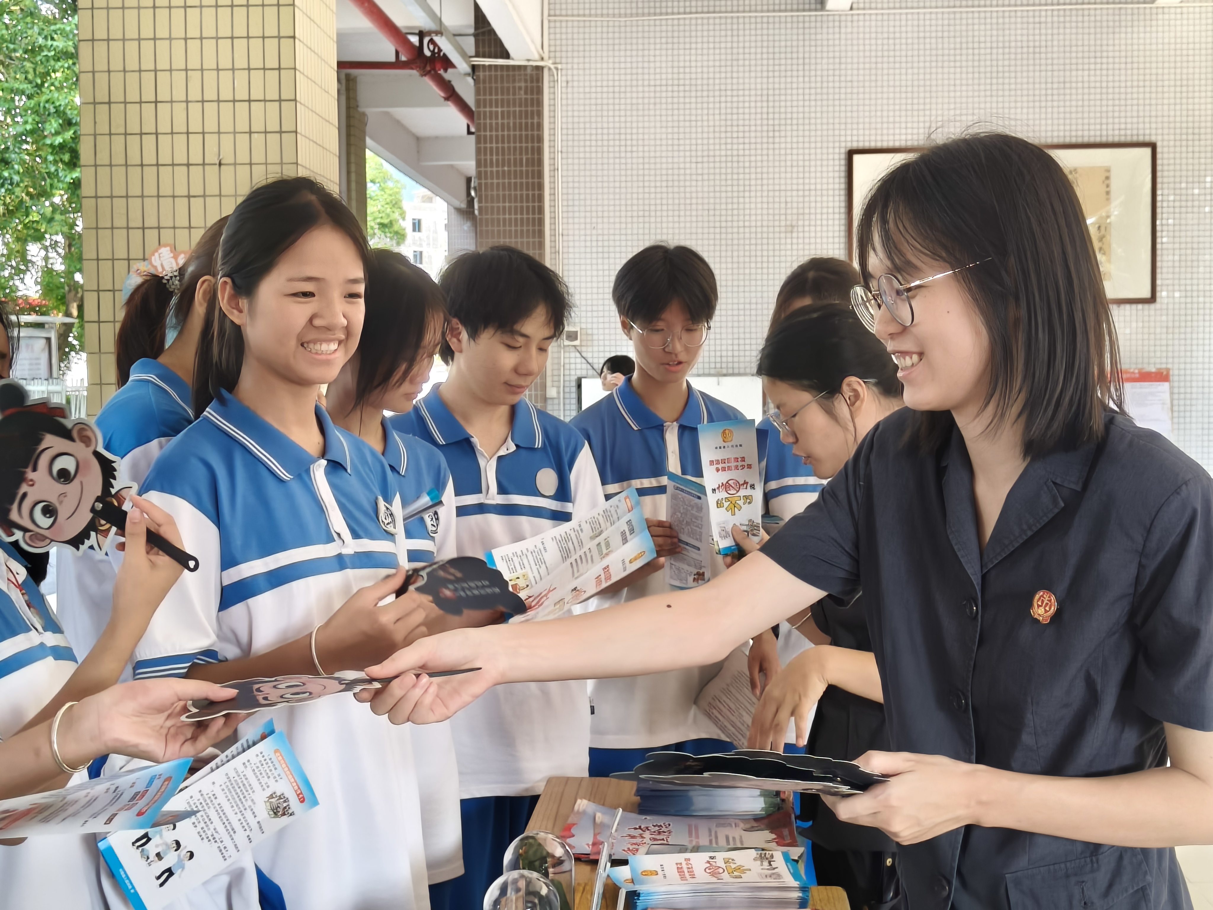 活动期间还在校园设置了宣传摊位,法院干警向同学们派发了精心制作的法治宣传手册,鼓励同学们将学到的法治知识分享给家人和朋友,共同营造尊法学法守法用法的良好氛围。